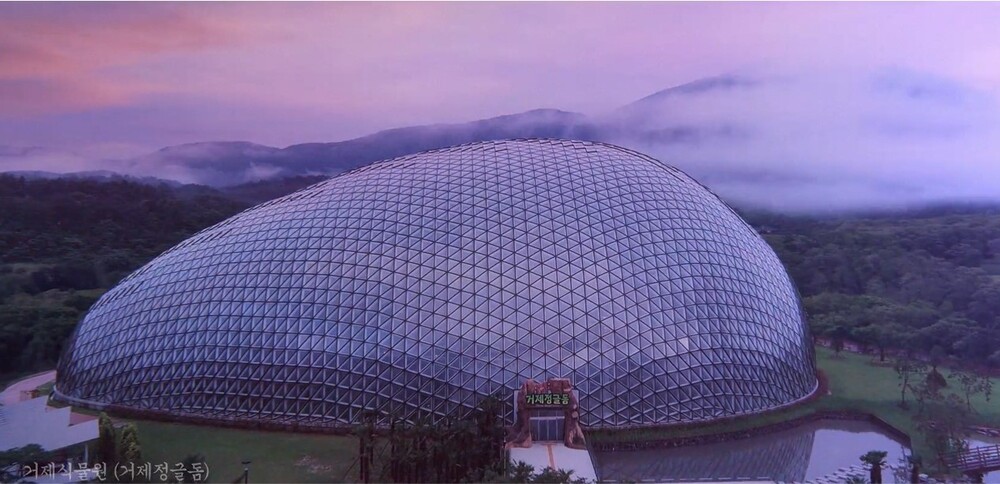 ► 2020년도에 개관한 거제식물원 정글돔은 면적 4468제곱미터, 최고 높이 30m, 7472장의 유리로 덮여 있는 우리나라 최대 규모 식물원입니다. 정글돔 주변의 조경도 잘 되어 있어 거제의 새로운 명물로 떠오르고 있습니다.