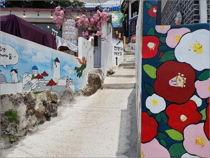 ► 통영으로 이동, '예술을 통한 도심 재생, 주민을 위한 재개발'로 유명한 동피랑 벽화마을을 산책합니다. 지금도 꾸준히 변화하고 있는 동피랑 마을의 화려한 벽화들을 즐겨보세요.
