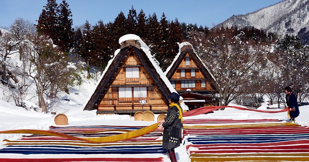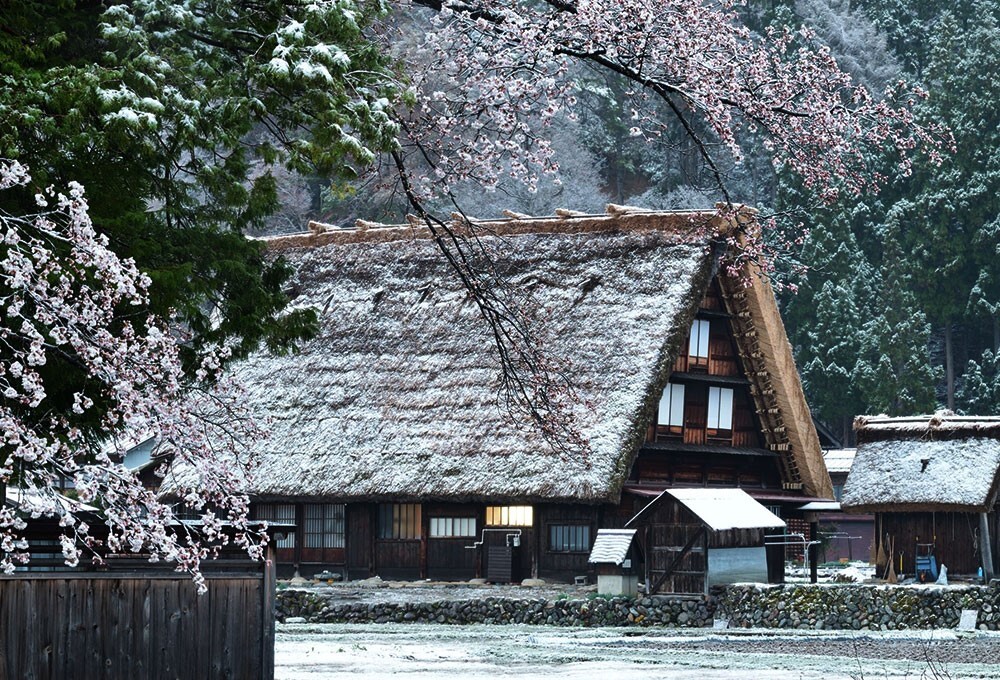 ► 1995년 유네스코 세계문화유산으로 지정된 시라카와고 오기마치 합장구조 취락. 산으로 둘러싸여 있으며 1년중 절반 가까이 눈에 덮여 있는 지역입니다. 대설지역인 자연환경에 적응하기 위해 건물의 지붕을 손을 모으고 합장하는 것처럼 만들었다 해서 합장구조취락입니다. 쇼카와 강을 따라 남북으로 길게 형성된 시라카와고 오기마치 합장구조 취락에서 일본의 원풍경을 볼 수 있습니다.(사진출처:시라카와고 관광협회 공식홈페이지)