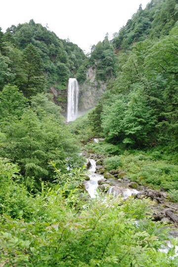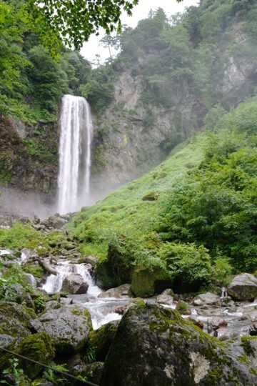 ► 64m 높이에서 호쾌한 물보라를 일으키며 떨어지는 폭 6m의 히라유 폭포는 박력 만점입니다. 주변 일대는 신록, 단풍 명소로서도 알려져 있으며, 겨울에는 폭포가 얼어붙어 거대한 얼음 기둥으로 변신합니다. 450여년전 센고쿠 시대, 폭포 근처에서 기진맥진한 병사들 앞에 나타나 히라유 온천을 안내해 줬다는 흰 원숭이 전설이 남아있습니다.