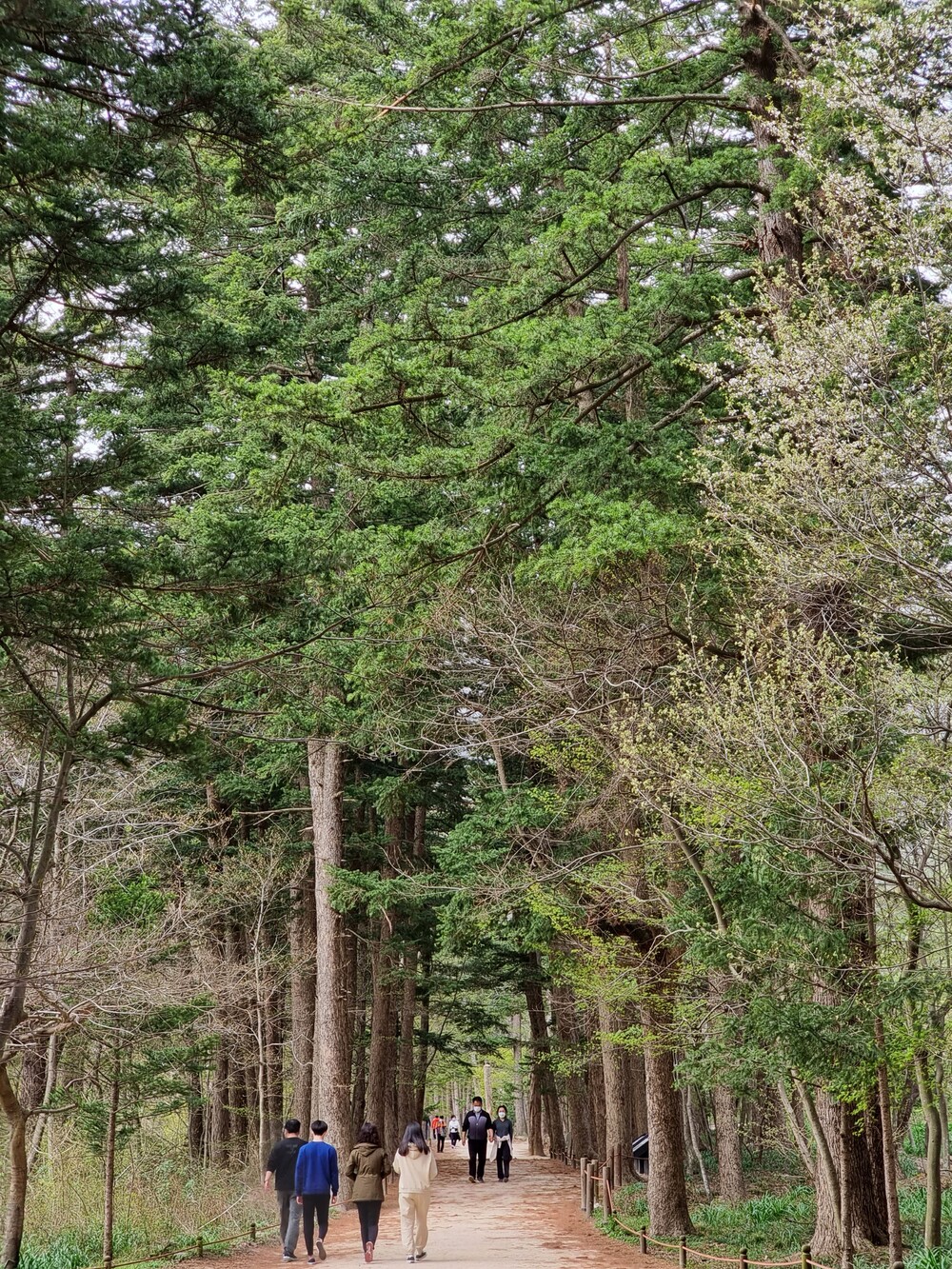 역사가 오랜 사찰의 매력은 물론 그 사찰의 고풍스러운 건물도 있지만 역사가 오랜 만큼 오랜 숲길을 갖고 있다는 것도 빼놓을 수 없습니다. 한국 3대 숲길로 꼽힐 정도로 아름다운 전나무 숲길을 따라 내소사를 향해 걷다 보면 어느새 벚꽃이 우리를 반깁니다. 사찰의 역사와 숲의 역사를 함께 느껴보세요.