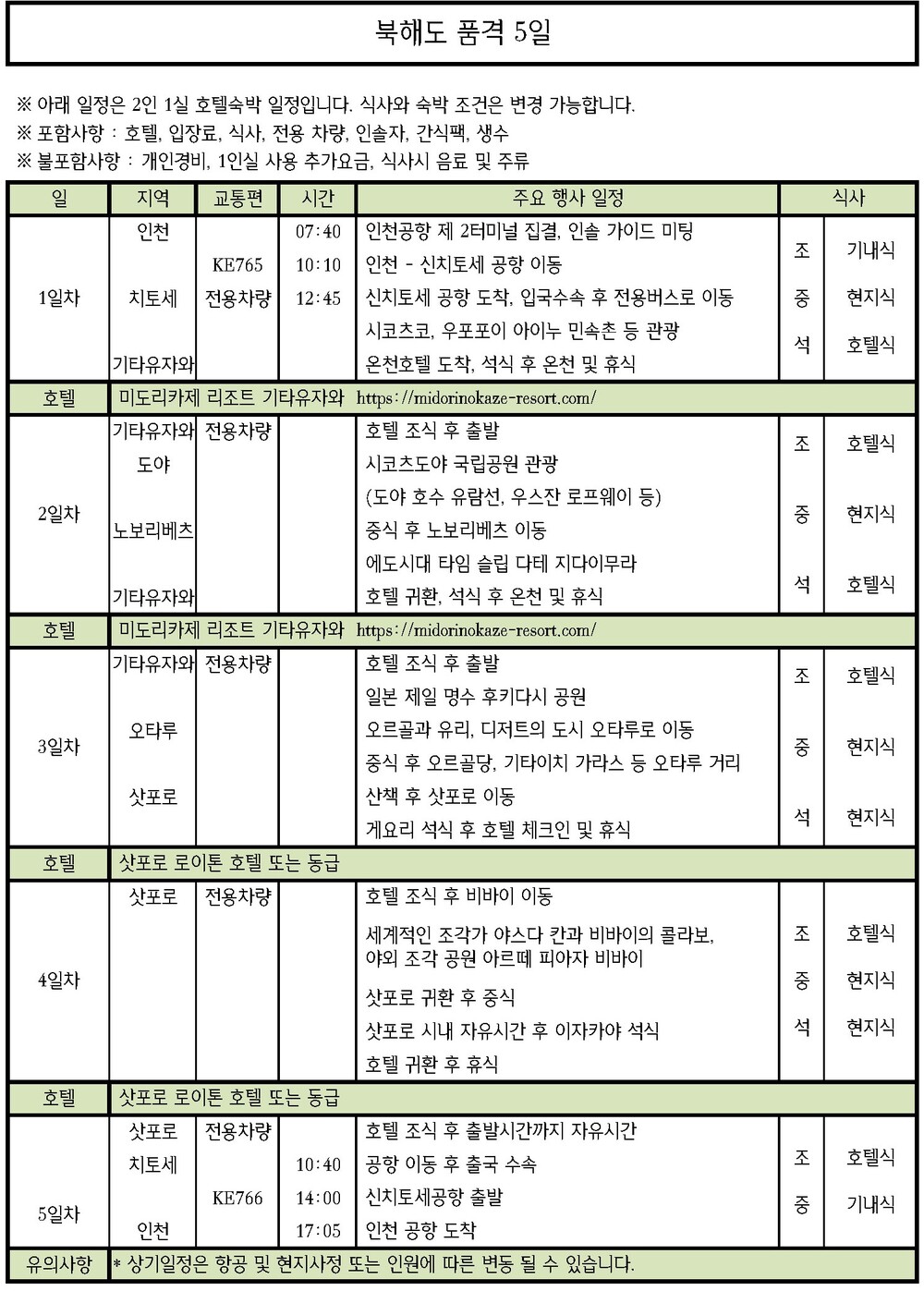 북해도 품격 5일