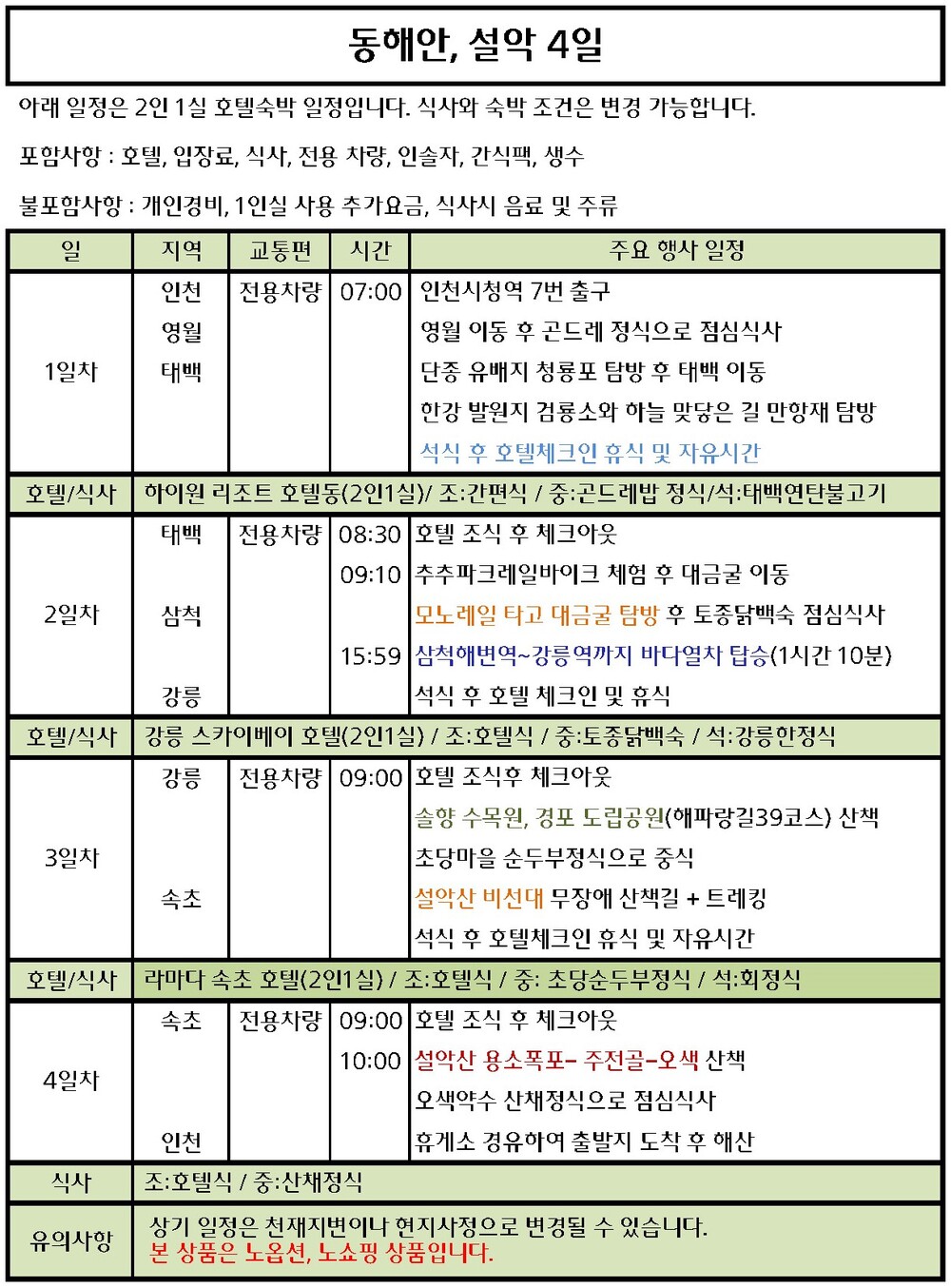 동해안, 설악 4일(영월/태백/강릉/속초)